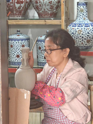 She believes in the harmony of tradition and innovation. She meticulously hand-paints each piece, drawing inspiration from Chinese mythology, nature, and history. Her designs are known for their intricate details and storytelling elements, making each piece not just a decorative item but a narrative of Chinese culture.